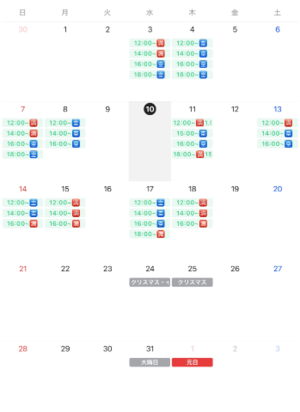 ・ 記載されている時間が最後にお受けできるお時間です。
