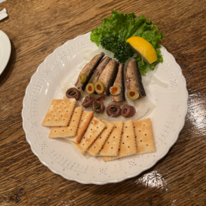 お食事もあるバーで大好きな物をつまみながら幸せでした〜♪