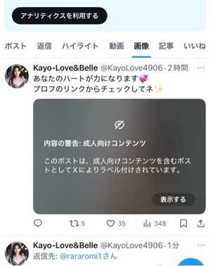 この衣装をXにあげると、毎回警告がくる。