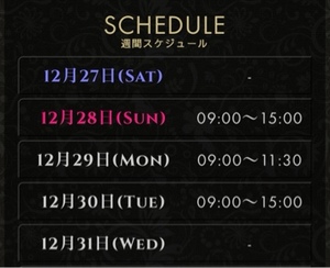 12月28日(日)9時〜15受付出勤
