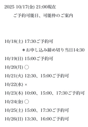 完全ご予約にて