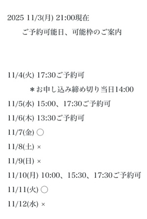 完全ご予約にて
