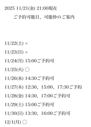 完全ご予約にて