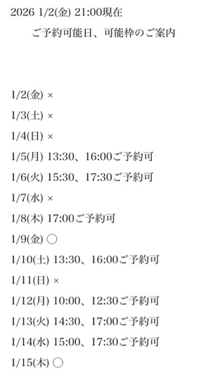 完全ご予約にて