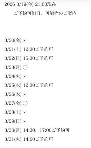 完全ご予約にて