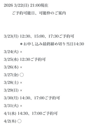 完全ご予約にて