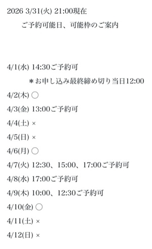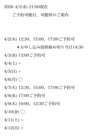 完全ご予約にて