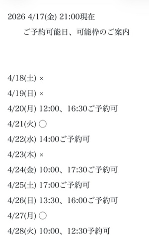 完全ご予約にて