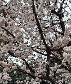 ?お店に向かう途中、この場所だけ桜が咲いちゃってました。