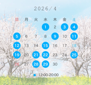 直近の空き枠は12日(木)、お好きな時間お選びいただけます?
