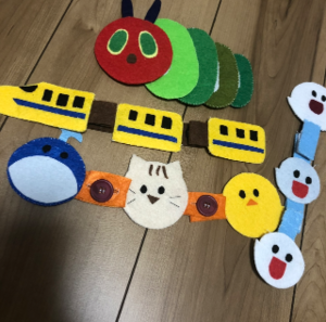 動物を繋げる布のおもちゃ。