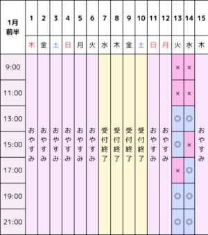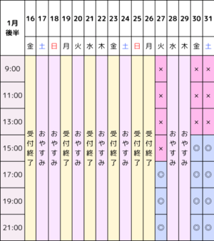 1月前半の空き枠になります!