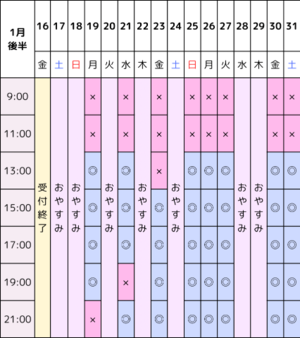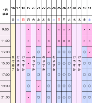 1月後半の空き枠になります!