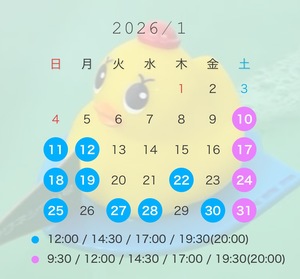 カレンダー内下記の通りです⏰