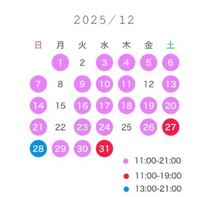 12月は月初はお時間選びやすいです♡