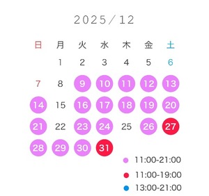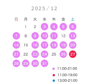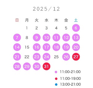 特に早い時間帯や、年末、土日はすでにお部屋が埋まってきてますのでお早めの約束お待ちしてますね🪄