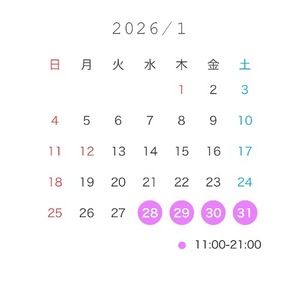 今月残りの出勤は、1月28日から4日間のみです♡