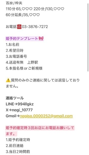 💛姫予約連絡方法💛