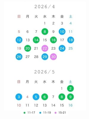 4/20(月) 11時~17時(17時のみ🉑)