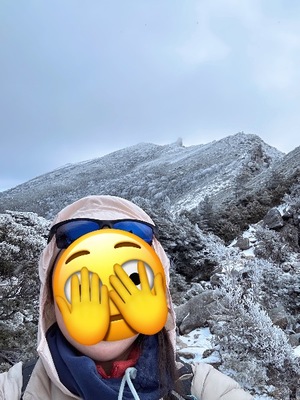 寒波の影響か何かでがっつり雪が降ってしまい惜しくも2400m地点で引き返しました。装備が足りなかった、、、、