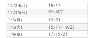 月曜日は15時、17時の枠が