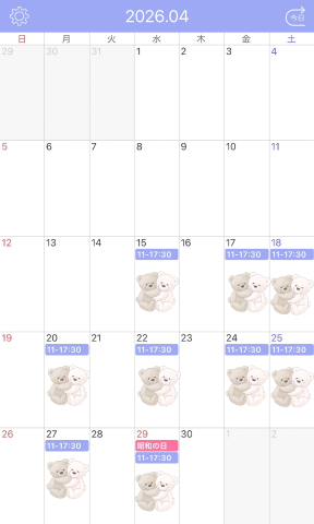 4月の予定です♪(๑ᴖ◡ᴖ๑)♪