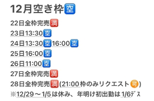 ✅1ヶ月など先でも予約ができる