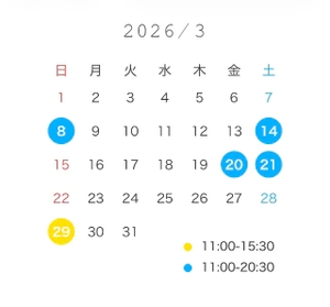 次回の出勤は3/14 11:00-20:30です