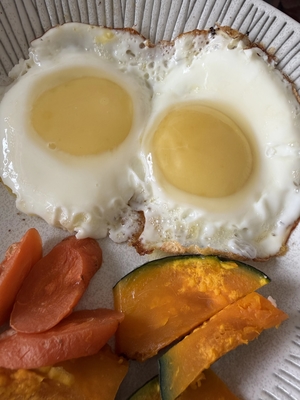 今朝は、目玉焼きを作りました。