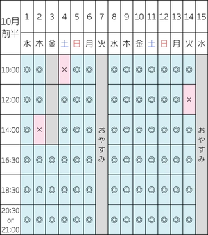 最新の案内状況➕10月シフトです