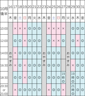 近日空き¦14日16:30/18:30