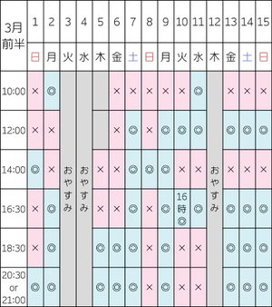 2月の空き枠はこちらです