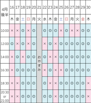 最短の空き枠はこちらです
