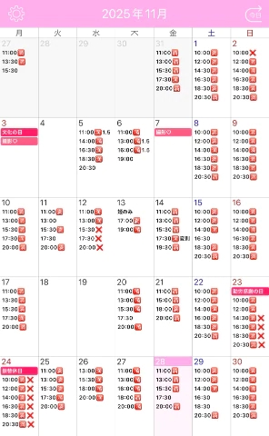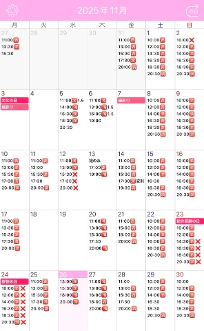 次回11/28  11:00/17:30です