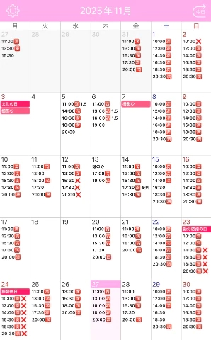 次回出勤 12/2 13:00/15:30/17:30