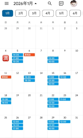 ⬇️直近の空き枠⬇️⛄️1月 ⛄️