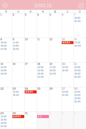 12月の現状のご予約の空き枠は