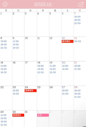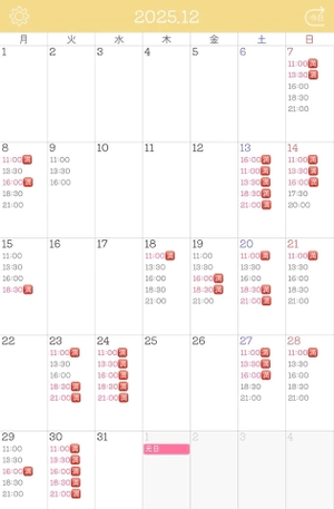 12月の最新の空き枠です