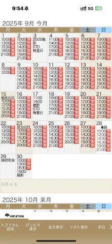 9月全10月土日は残り3枠