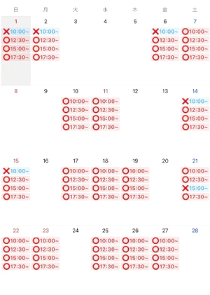 7日(土)10:00~/12:30~/15:00~/17:30~LINE、メールからの