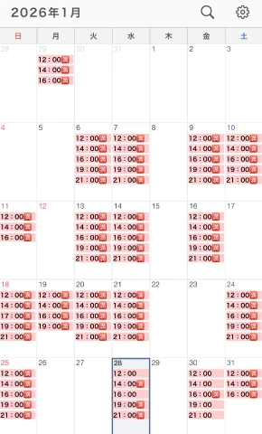 おはようございます本日12時/16時となっております♀️当日のご予約は直接お店までお問い合わせお願いします本日もよろしくお願いします↕️⟡.·*.··············································⟡.·*.1.2月予約状況⬇️お問い合わせはこちら⬇️