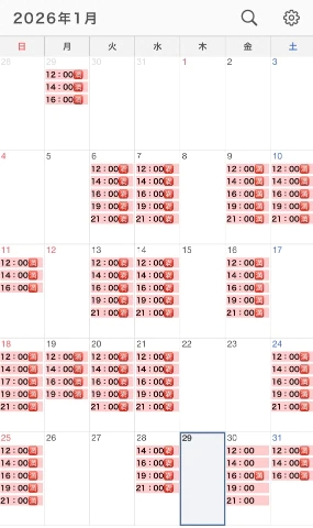 そして、明日はキャンセル発生の為1/30(金)12時/14時/19時/21時と人気枠含めお時間選びやすくなっております♀️