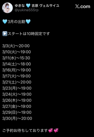 プラス!3月の出勤予定を貼っておきますね!(Twitterに載せているものをそのままスクショしてます)