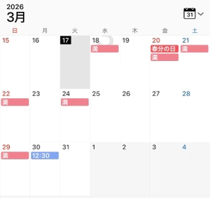 現在の4月のスケジュールはこちらです