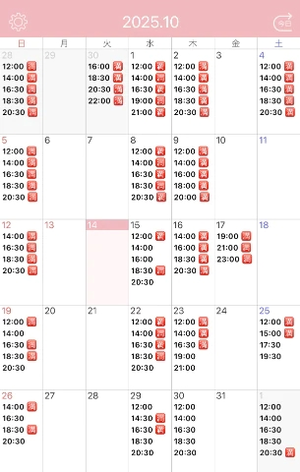 明日は14時/16時半/20時半が