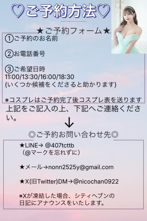 ※姫予約完了の際にコスプレ表をお伝えいたします。