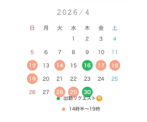の出勤リクエストは、前日までにリクエストいただけたら出勤可能な日となっております。
